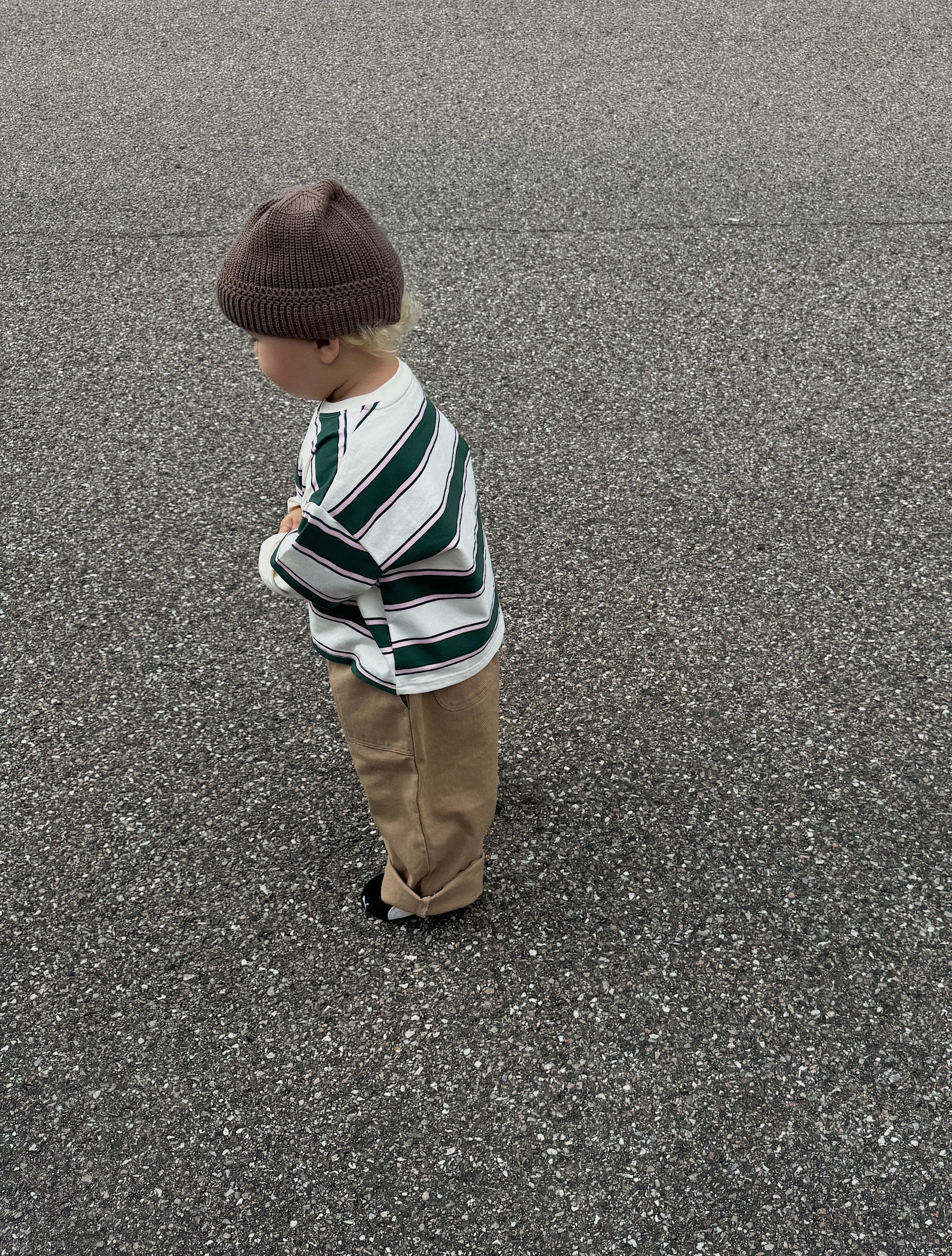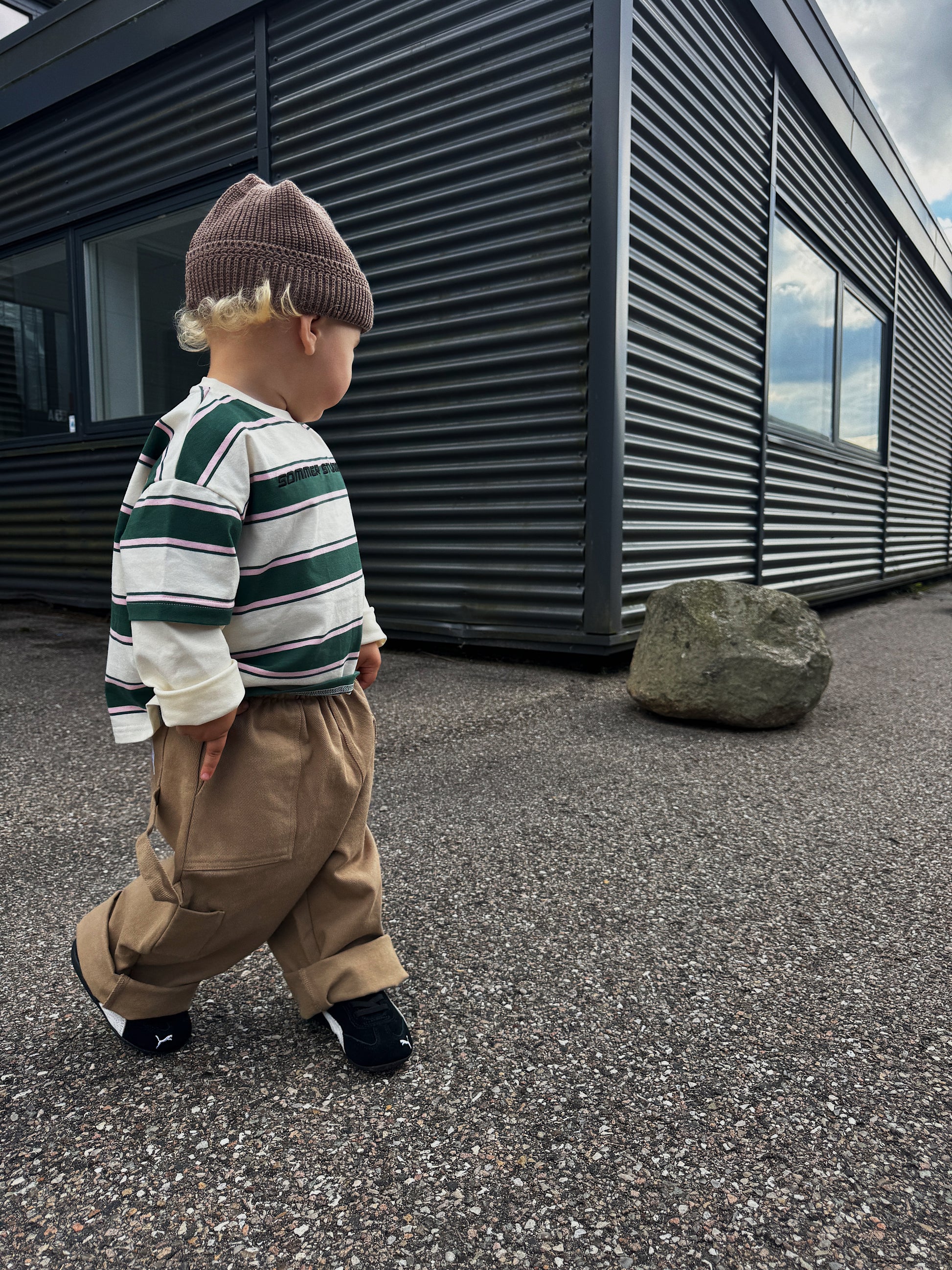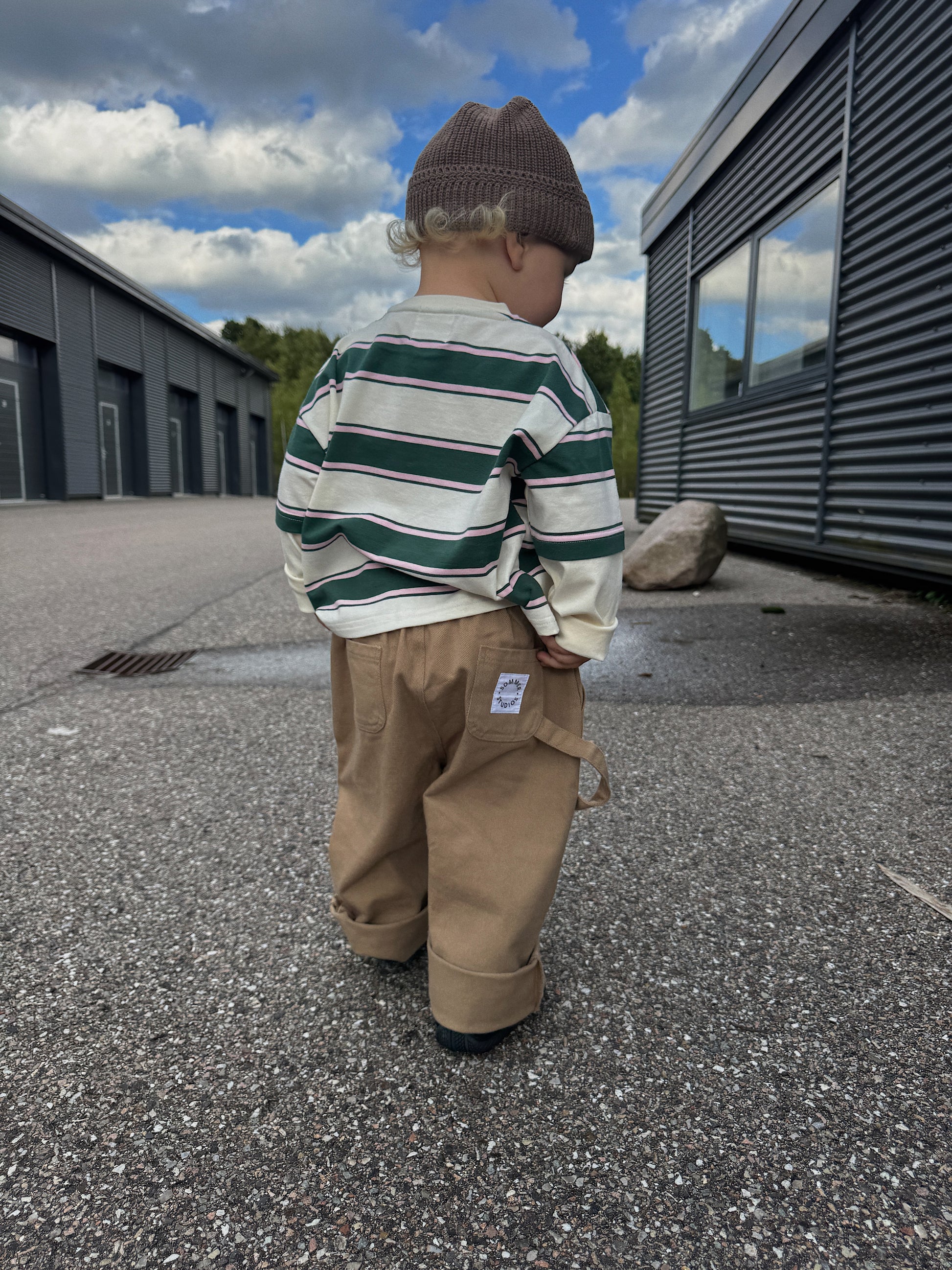 The trousers are roomy enough for the child to grow into and have plenty of length. Like many of the other trousers you'll find here at Sommerstudios, it might be a good idea to start with a small turn-up if they’re a bit too long—this will also extend the trousers' lifespan and usability.