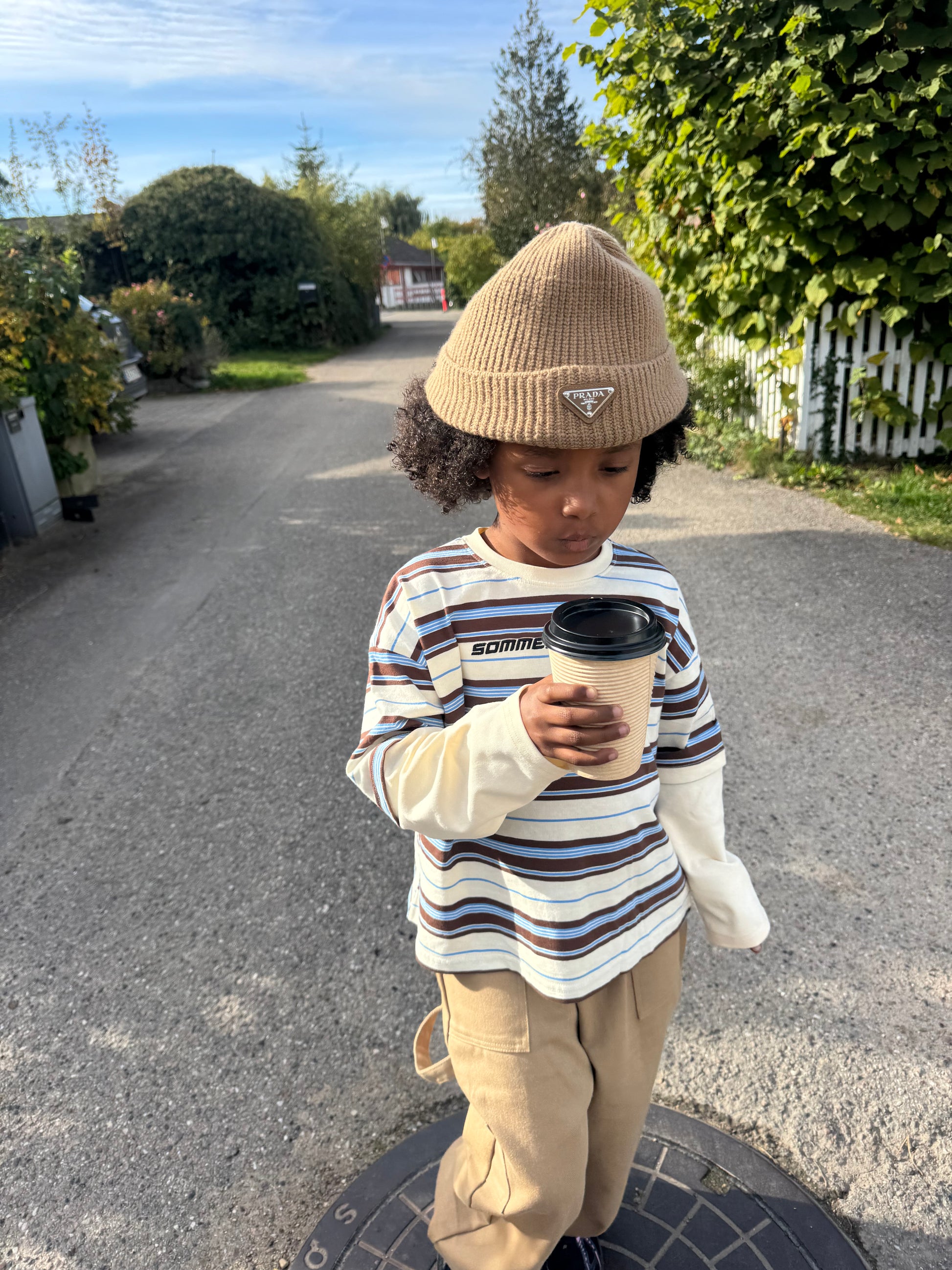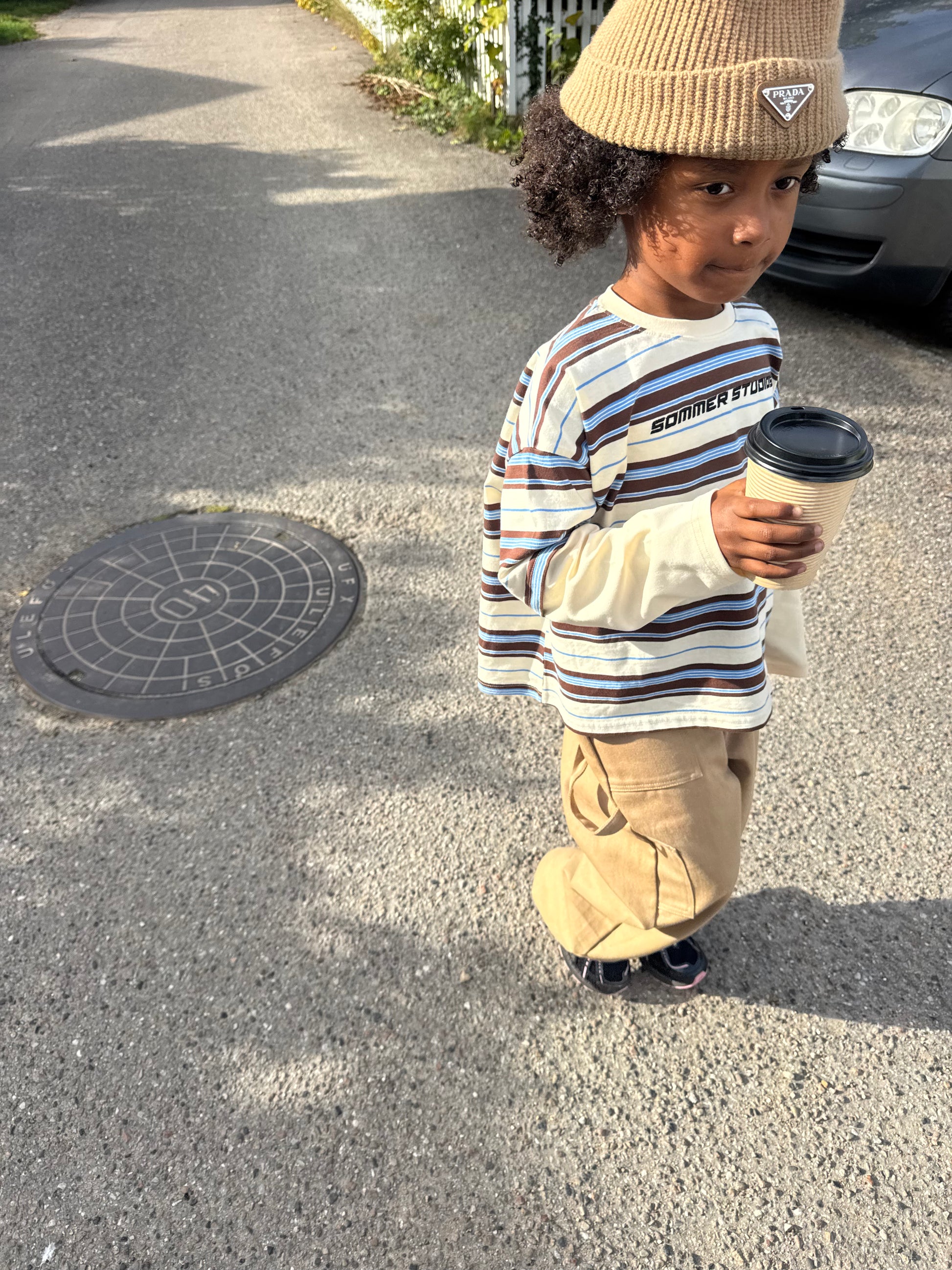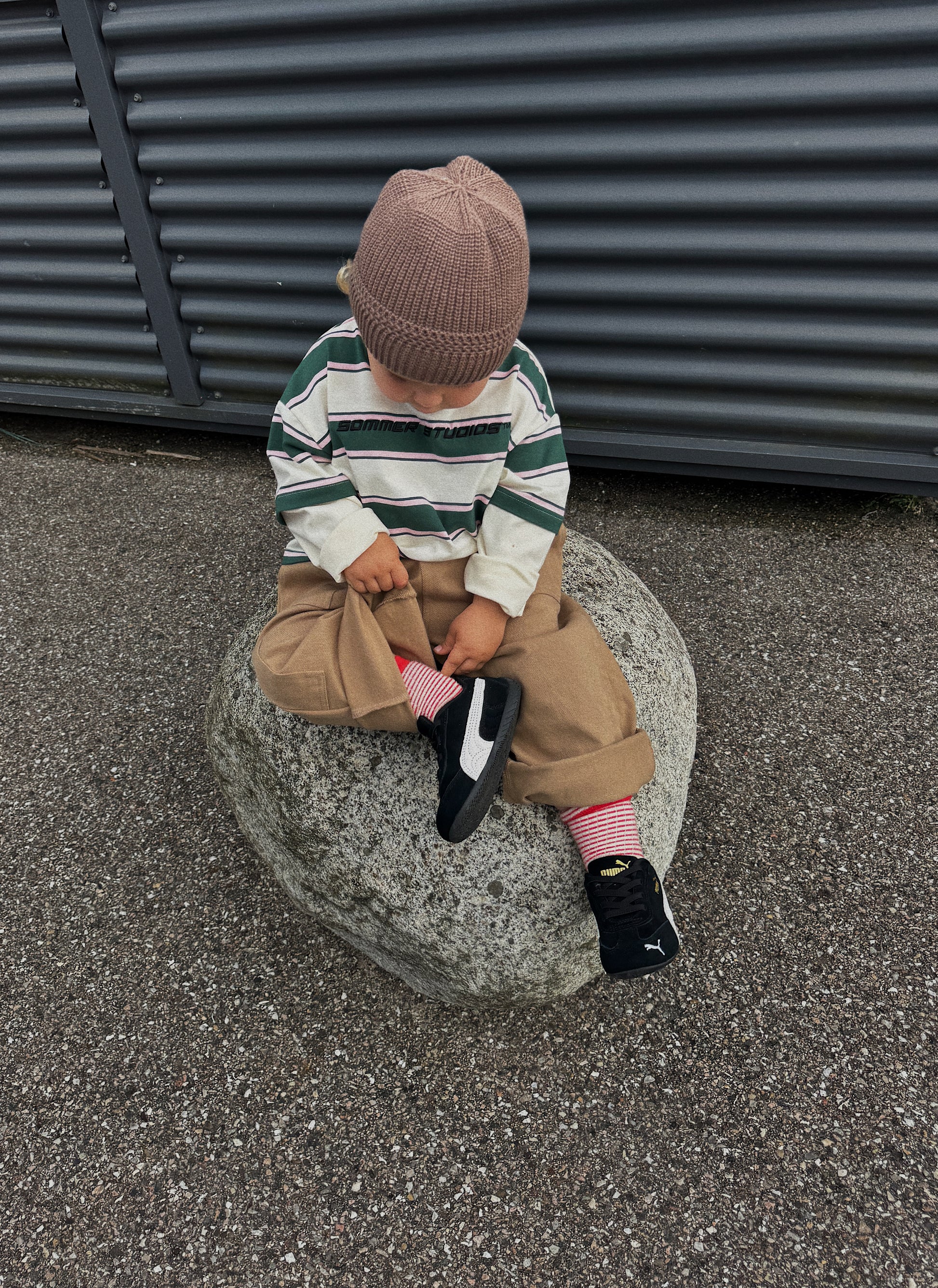 The trousers are roomy enough for the child to grow into and have plenty of length. Like many of the other trousers you'll find here at Sommerstudios, it might be a good idea to start with a small turn-up if they’re a bit too long—this will also extend the trousers' lifespan and usability.