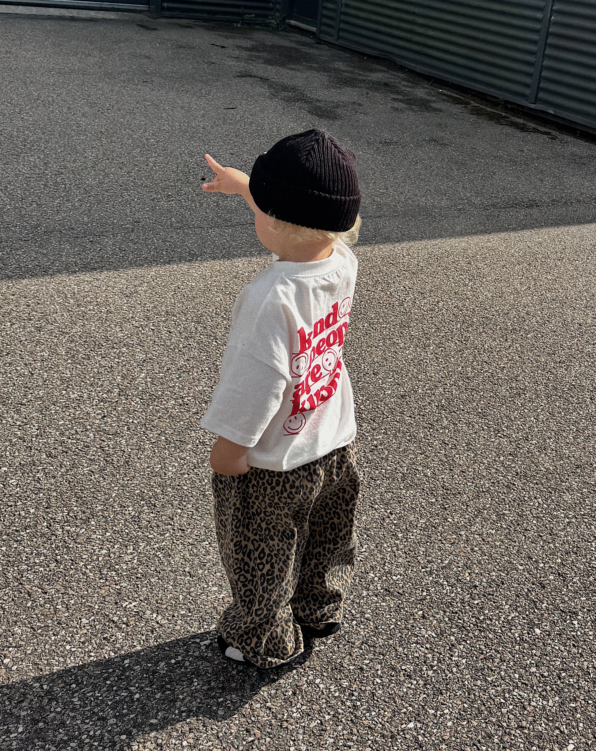Choosing a size for your child can be a challenge, as all small children are very different in size. As a rule, we only buy clothes for the webshop that are flexible, soft and easy for all children to move in.